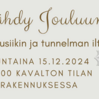 Joulumusiikin ja tunnelman ilta Kavalton Tilalla 15.12.2024 Aika: Sunnuntai 15.12. klo 17.00Paikka: Tunnelmallinen Kavalton tilan Päärakennus, Kavaltontie 11, PiikkiöLiput: 25…
