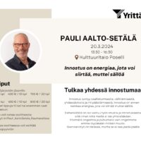 "Innostus on energiaa, jota voi siirtää muttei säilöä" Pauli Aalto-Setälä on pidetty, ihmisläheisestä asenteestaan tunnettu puhuja, joka nyt on iloksemme…