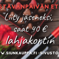 Liittymisetuna saat 40 € suuruisen summan käyttöösi www.siunkauppa.fi -lahjakorttiverkkosivulle. Tämän lisäksi saat näkyvyyttä aktiivisella Facebook -sivullamme.