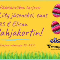 Liity Yrittäjien jäseneksi ajalla 13.-24.4.2019! Ensimmäiselle 40 uudelle jäsenelle 35 € Elisan lahjakortti.