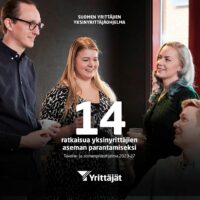 Yrittäjät julkaisi 14 kohdan listan toimista, joilla vahvistetaan yksinyrittäjien asemaa. Yksinyrittäjille avataan myös oma neuvontanumero.