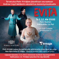 Evita -jäsennäytös 1.12. Porin teatterissa! Porin Yrittäjät tarjoavat jäsenyritykselle veloituksetta yhden lipun per yritys Porin teatterin Evita-näytökseen 1.12. klo 19. Avec-lipun…