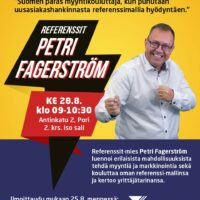Referenssimies Petri Fagersröm tulee kertomaan erilaisistamahdollisuuksista tehdä myyntiä ja markkinointia, kouluttaa omanreferenssimallinsa ja kertoo oman yrittäjätarinansa.