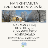 Tervetuloa Lapinjärven kunnan vuosittaiseen hankintailtaan kuulemaan ja keskustelemaan kunnan v. 2025 hankinnoista ja yrittäjiä koskevista ajankohtaisista aiheista kunnan toiminnoissa. Tilaisuus…