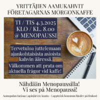Kunnan järjestämä Yrittäjien aamukahvit Menopaussilla (Kantatie 3, 07800 Lapinjärvi) tiistaina 4.3. klo 8.00 Tervetuloa juttelemaan ajankohtaisista asioista kahvin ääressä! Företagarnas…