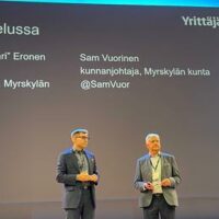 Myrskylän kunta ja Myrskylän yrittäjät olivat vahvasti esillä Kunnallisjohdon seminaarissa Finlandia-talon suuressa pääsalissa 6.10.2021.