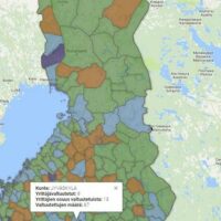 Kartalta on helppo katsoa värikoodin avulla yrittäjien osuus kuntasi valtuustosta.