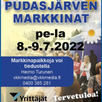 Pudasjärven markkinat perjantaina ja lauantaina 8.9-.7.2022. Markkinapaikkoja voi tiedustella Heimo Turunen vkkmedia@vkkmedia.fi, 0400 385 281 Järjestäjä: Pudasjärven Yrittäjät