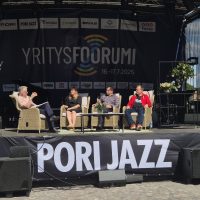 Peter Vesterbacka, Kari Varis ja Katja Hautamäki pohtivat yrittäjyyttä ja koulutuksen roolia uutisankkuri Keijo Leppäsen haastattelemana Yritysfoorumissa Porissa heinäkuussa.