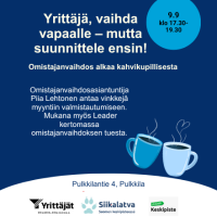 Kaffeilla käsitellään omistajanvaihdosta yleisellä tasolla sekä tarkastellaan osakassopimusten ja edunvalvonnan merkitystä. Puhujina ovat omistajanvaihdosasiantuntija Piia Lehtonen, joka tuo esiin omistajanvaihdoksen…