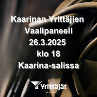 Kaarinan Yrittäjät järjestää: Kaarinan vaalipaneeli ke 26.3. klo 18:00 Kaarina-talon Kaarina-sali, Lautakunnankatu 1, Kaarina Kahvitarjoilu väliajalla klo 19-19:30 (50 ensimmäiselle) Vaalipaneeli…