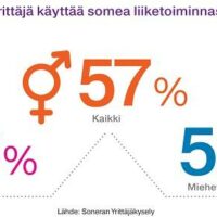Noin 57 prosenttia yrittäjistä hyödyntää somea liiketoiminnassaan. Naisyrittäjistä somea käyttää kaksi kolmasosaa, kertoo Soneran Yrittäjäkysely.