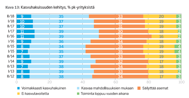 Tämä käy ilmi Suomen Yrittäjien, Finnveran ja työ- ja elinkeinoministeriön teettämästä Pk-yritysbarometrista, joka julkaistiin 11.9.2018.