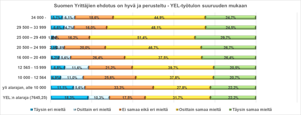 Yrittäjien luottamus YEL-järjestelmään laahaa ja YEL-työtulot ovat matalalla tasolla. Suomen Yrittäjien kesällä 2017 jäsenistölleen tekemän kyselyn mukaan jopa kaksi kolmesta vastaajasta alivakuuttaa itsensä lain edellyttämään tasoon nähden ja puolet myös todellisiin tuloihin nähden. Merkittävin syy alivakuuttamiseen erityisesti nuorilla yrittäjillä on se, etteivät he usko saavansa rahoilleen vastinetta. Kaikista vastaajista jopa kolme neljästä ei usko, että he tulevat saamaan vakuutusmaksuaan vastaavaa eläkettä. Saman verran vastaajista uskoo, että järjestelmää tullaan vielä muuttamaan merkittävästi ennen heidän eläkkeelle jäämistään. Vain neljä prosenttia vastaajista luottaa täysin nykyiseen YEL-järjestelmään. Kahdella vastaajalla kolmesta luottamusta ei ole lainkaan tai vain hyvin vähän. Vakuutusmaksut koetaan kohtuuttomiksi, mikä entisestään vähentää halukkuutta osallistua järjestelmään. Yrittäjistä 58 prosenttia on täysin ja vielä 25 prosenttia osittain samaa mieltä väittämän ”Yrittäjän eläkevakuutusmaksu on kohtuuton suhteessa sillä saataviin etuuksiin” kanssa. Kolme neljästä vastaajasta uskoo, että heillä olisi parempi vanhuudenturva, jos he saisivat sijoittaa eläkevakuutukseen käyttämänsä rahat itse. Järjestelmän katsotaan rajoittavan yrittäjän vapautta päättää turvansa tasosta ja omasta varautumisestaan yritystoiminnan riskeihin. Järjestelmä koetaan sekavaksi ja liian jäykäksi erilaisiin yritystoiminnan ja elämän tilanteisiin.