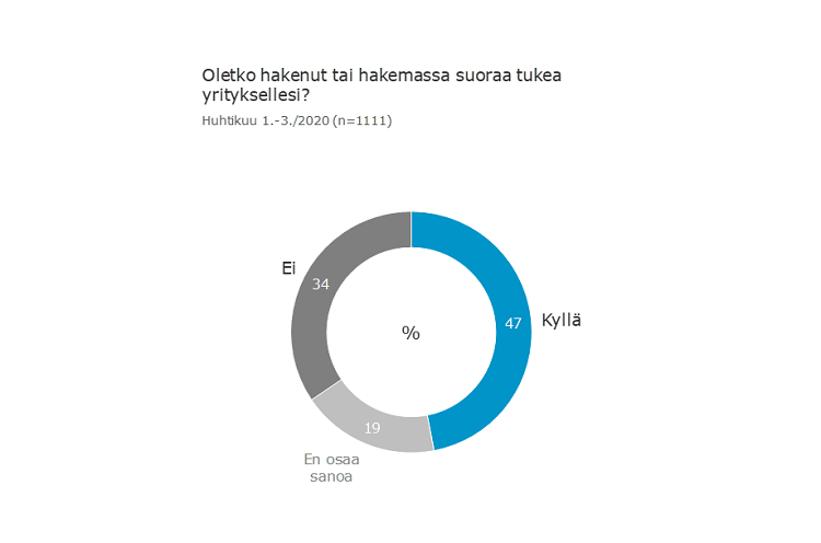 Yrittäjägallupissa tutkittiin nyt ensimmäisen kerran yritysten tuki- ja rahoitustarpeita. Lähes joka toinen yritys kokee tarvitsevansa ja aikoo myös hakea suoraa julkista tukea.