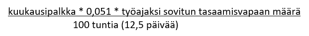 Jos kuukausipalkkaisen työntekijän työajan tasaamisvapaan määrästä tai antamisesta sovitaan edellä kuvatun ja työehtosopimuksen mukaisesti, työntekijälle maksetaan erillinen kiinteä kuukausikorvaus kaikilta kalenterikuukausilta. Sitä ei oteta huomioon muiden palkkaerien laskennassa.