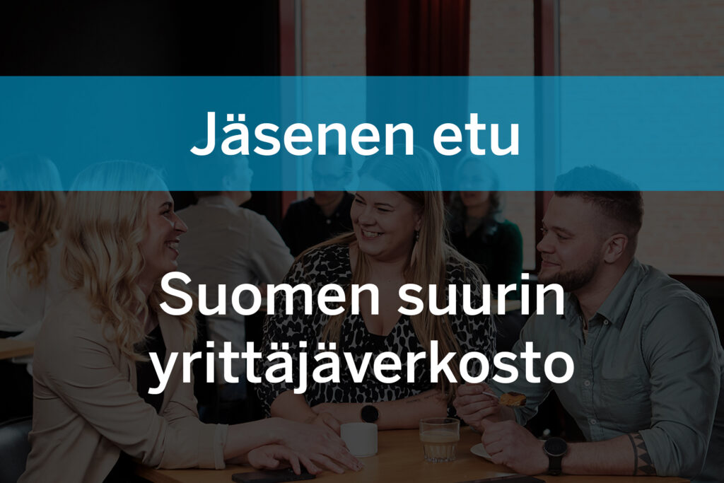 - Jäsenenä et jää yksin, sillä tukenasi on Suomen suurin yrittäjäverkosto ja -yhteisö.