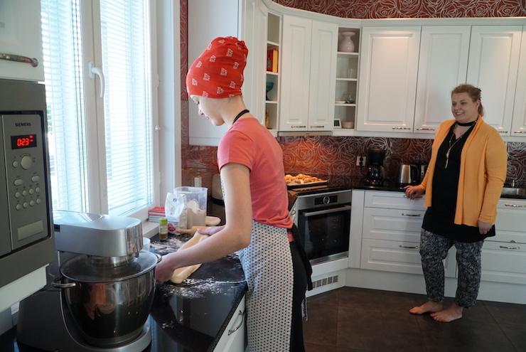 Aamulla käynnistyy toinen vaihe, leipominen. Ylivainio leipoo pullat itse.