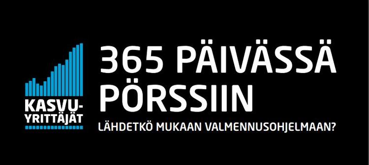 Suomen Yrittäjien järjestämä 365 päivässä pörssiin -valmennusohjelma jatkuu. Ohjelmassa valmennetaan muun muassa hallitustyön, sijoittajaviestinnän, yritysten arvonmääritysten ja rahoitusratkaisujen maailmaan.