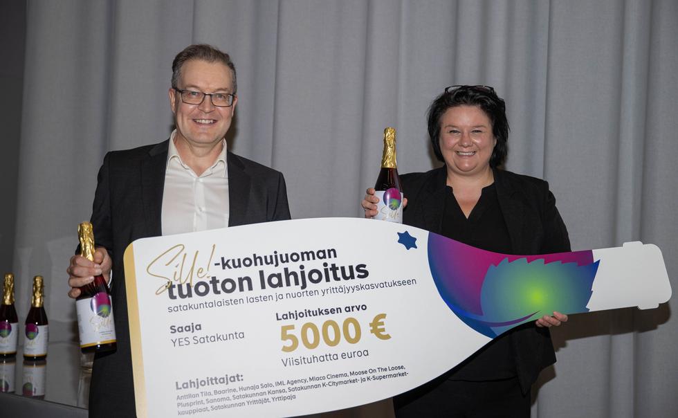 Satakunnan Yrittäjien kevätkokouksessa 9.6 lahjoitettiin Sille-kuohujuoman tuotto maakunnalliseen yrittäjyyskasvatukseen.