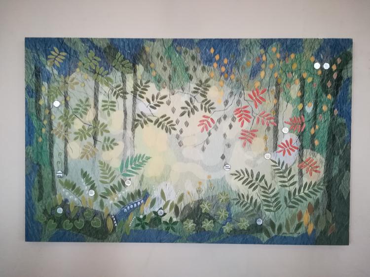 Kastetaulussa on valoisa metsämaisema, missä vuodenajat vaihtuvat keväästä kesään ja syksystä talveen. Talven lumihiutaleiden valoisa kimmellys näkyy taulun keskellä. Metsän värit vaihtuvat vuodenaikojen mukaan. Kastetaulussa on paljon yksityiskohtia, kuten oikeassakin metsässä. Lapset saattavat huomata metsän yksityiskohdat herkemmin kuin aikuinen. Pienistä osista muodostuu iso kokonaisuus – kokonainen metsä.