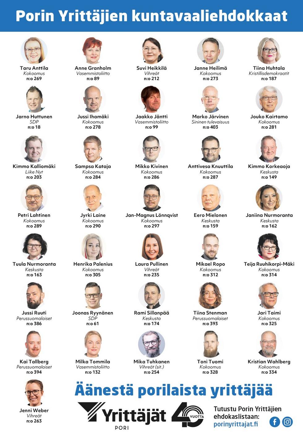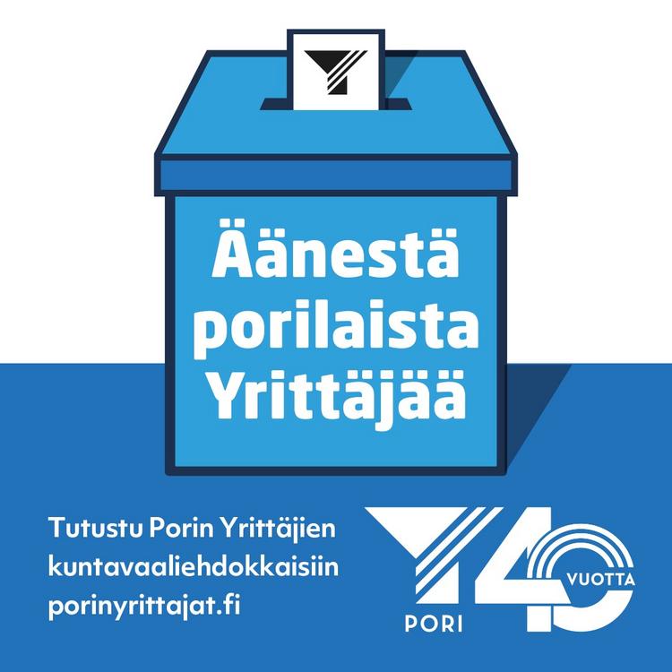 Äänestä porilaista yrittäjää! Ei kuntaa ilman yrityksiä! Katso lista Porin Yrittäjien jäsenehdokkaista.