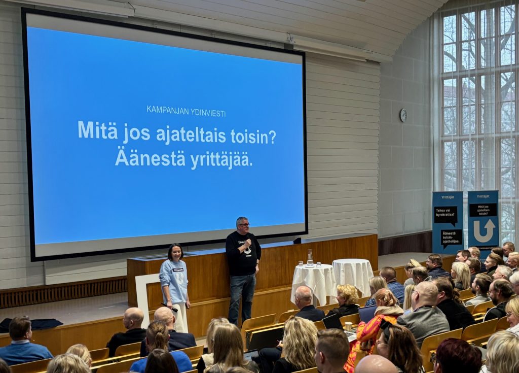 Suomen Yrittäjät julkisti perjantaina kunta- ja aluevaaliohjelmansa sekä kampanjailmeen, jolla halutaan kannustaa äänestämään yrittäjää. Julkistus tapahtui yrittäjäjärjestön Vaikuttajafoorumissa Helsingissä.