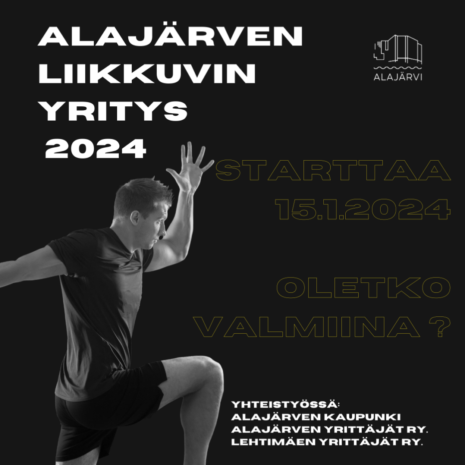 Alajärven liikkuvin yritys –kampanjan starttaa käyntiin 15.1.2024 nyt kolmatta kertaa. Kampanja toteutetaan yhteistyössä Alajärven kaupungin liikuntapalvelut, Alajärven Yrittäjät ry. sekä Lehtimäen Yrittäjät ry. kanssa. Kampanja on tarkoitettu kaikille alajärveläisille yrityksille, eikä tarvitse olla välttämättä Yrittäjien jäsen! Tavoitteena on saada alajärveläisten yritysten työntekijät liikkeelle suurella joukolla ja tuoda hyvää mieltä ja jaksamista työyhteisöön liikunnan avulla.
