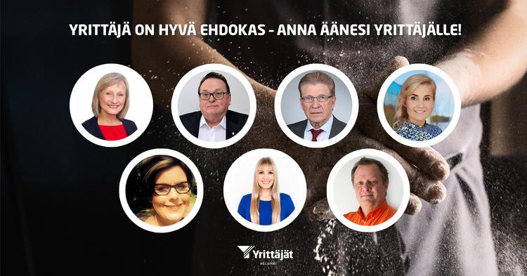 Helsingissä ehdolla olevat yrittäjäjärjestön jäsenet: