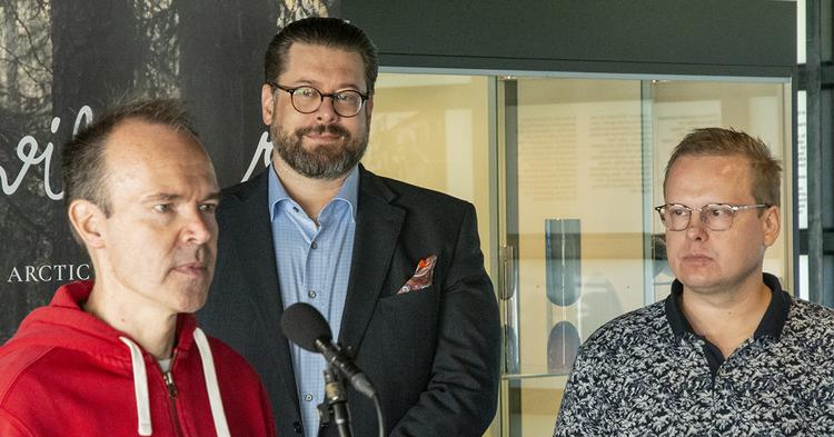 Kuva: Peter Vesterbacka (vas.) vihjaili tiedotustilaisuudessa, että oppilaitosyhteistyötä kaivataan tuotekehitykseen ja tuotantoon. Mukana kuvassa Kultasuklaan Tatu Kaskela ja makumestari Jari Kurtti.