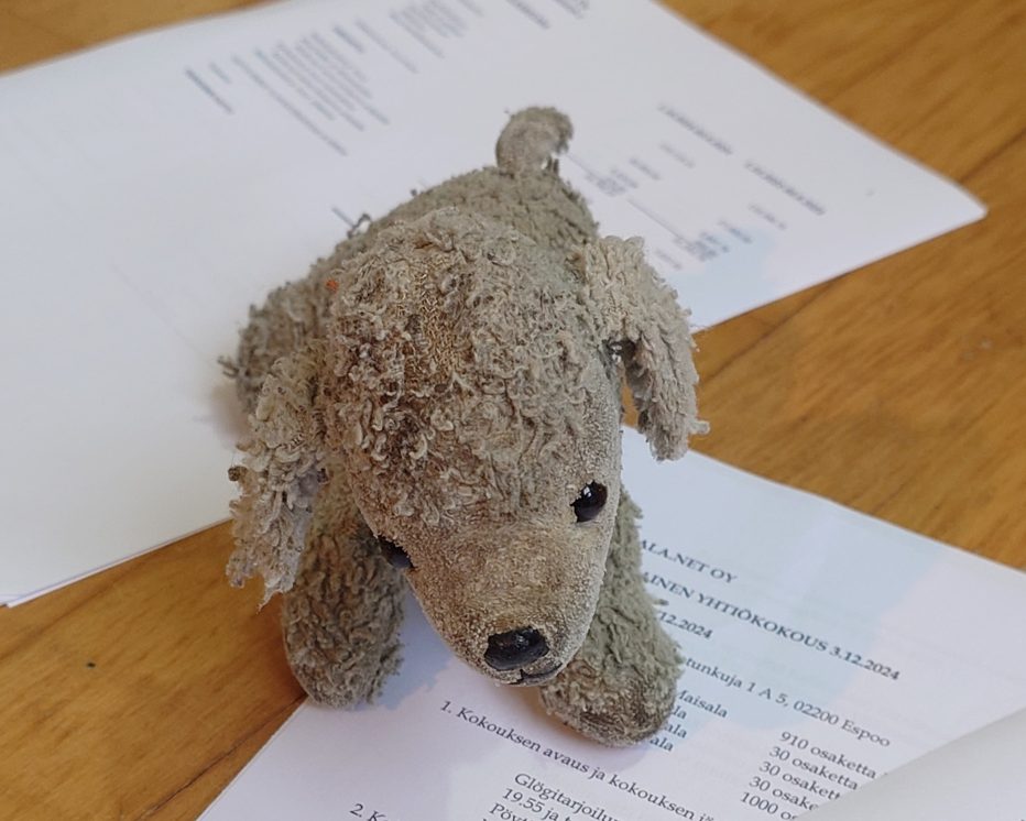 Joulukuussa pidetyn yhtiökokouksen pöytäkirjassa lukee, että lemmikkikoira Auroraa ei voitu valita hallitukseen. Lapsi tätä ehdotti, kun olimme päässeet kohtaan hallituksen valinta. Ehdotus käsiteltiin perustellen, miksi ehdotus pehmoeläimestä ei kelpaa. Keskustelimme myös, miksi alaikäinen ei itse voi toimia hallituksen jäsenenä, mutta hän voi olla osakkeenomistaja.