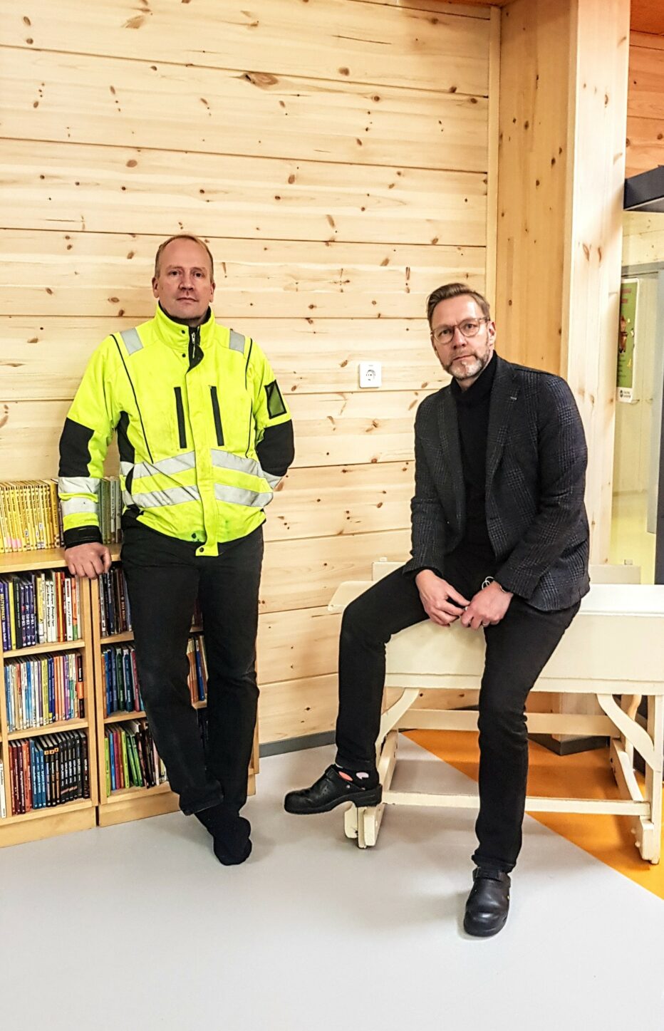 Myrskylän uudella hirsikoululla oli avoimet ovet maanantaina 8.11. Puheenjohtajamme Aku Eronen kävi tutustumassa kouluun, jonka rakentamisessa on ollut mukana myös myrskyläläisiä yrityksiä. Hän tapasi tuolloin koulun rehtori Vesa Karjalaisen ja sai häneltä tämän haastattelun. Kuvassa vasemmalla myös Myrskylän kunnan tekninen johtaja Timo Krigsman, joka on ollut vahvasti mukana rakentamisprojektissa.