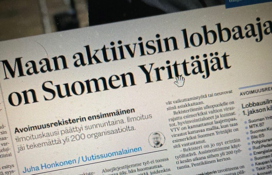 Avoimuusrekisteri kertoo: Suomen Yrittäjien vaikuttaminen laajinta