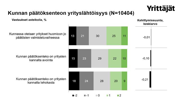 Pahin ongelma päätöksenteossa on yrittäjien mielestä tehottomuus. Sen sijaan yritysten kuuleminen jo valmisteluvaiheessa saa paremman arvion.