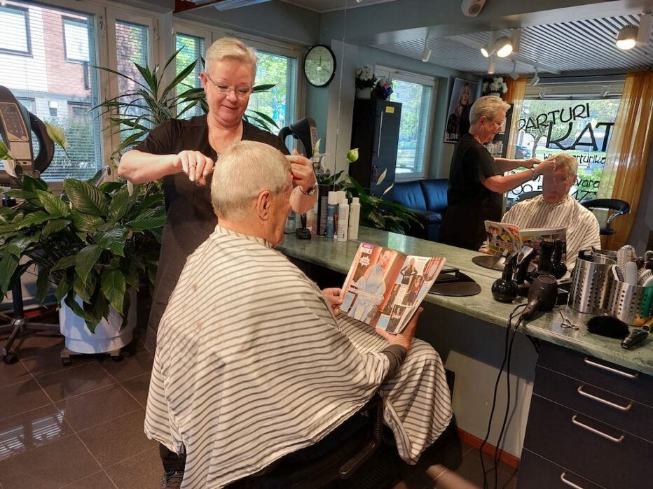 Monenlaisten asiakkaiden huomioimista. Sitä on hiljainen palvelu parturi Kati Hakomeren mielestä. Hänen palveluihinsa kuuluu hiustenleikkaus, jossa ei puhuta mitään sen jälkeen, kun on päätetty hiusten mallista.