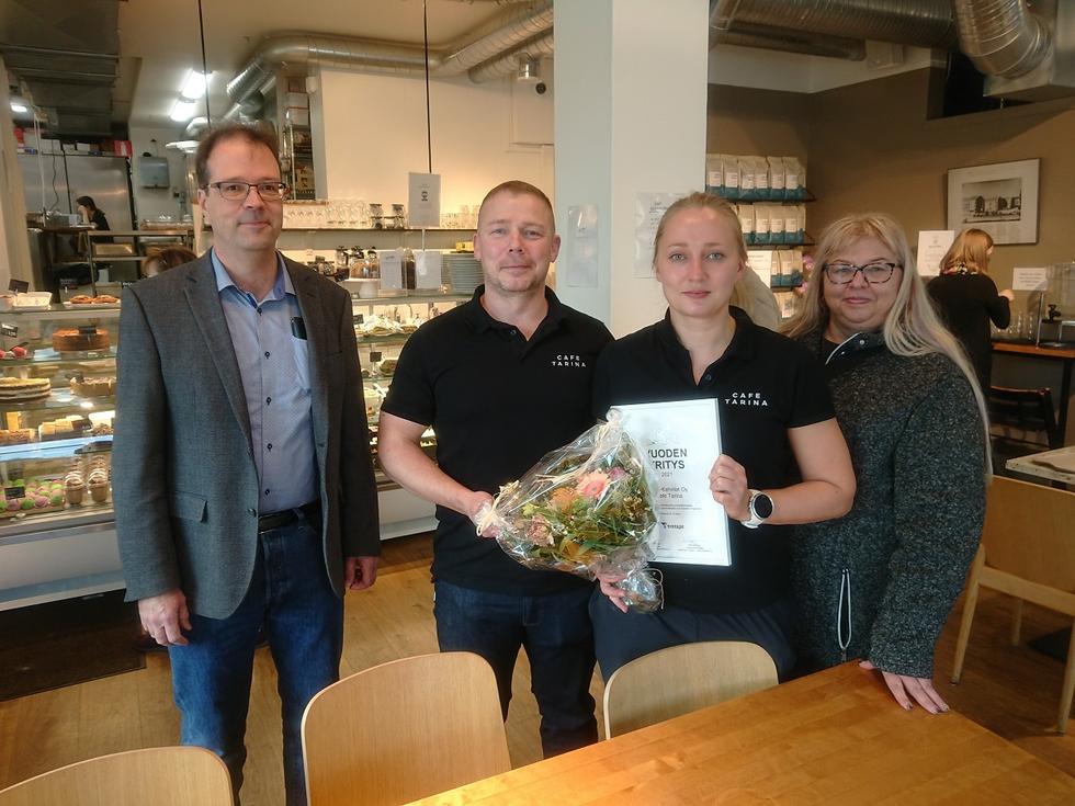 Vuoden 2021 LHY yritys RTE Kahvilat Oy palkittiin Cafe Tarinassa 6.10.2021.