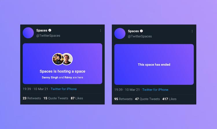 Twitteriin on ilmestynyt live-keskusteluhuoneita, joissa keskustellaan kirjoituksen sijasta äänellä. Kyse on uudesta Spaces-palvelusta, joka imitoi viime vuoden lopulla lanseerattua Clubhousea. Tällä hetkellä ominaisuus toimii ainoastaan mobiilikäyttäjillä, mutta lähitulevaisuudessa odotetaan myös työpöytäversiota.