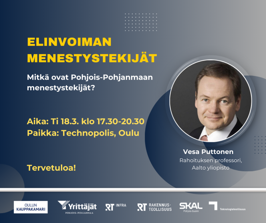 Tilaisuuden järjestivät: Infra Pohjoinen ry, Oulun Kauppakamari, Pohjois-Pohjanmaan Yrittäjät, SKAL, Talonrakennusteollisuus ja Teknologiateollisuus.