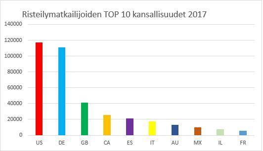Vuoden 2017 risteilykausi alkoi keskiviikkona 3.5. ja kauden viimeinen alus AIDAvita vieraili Helsingissä 18.10. Kauden aikana Helsingissä vieraili kahdeksan uutta alusta. Kesän kiireisimpänä risteilypäivänä 31.5. Helsingissä oli samanaikaisesti jopa kuusi risteilyalusta ja yli 11 000 risteilymatkustajaa. Risteilymatkailijoiden suurimmat kansallisuusryhmät olivat yhdysvaltalaiset 26%, saksalaiset 25% ja britit noin 10%.