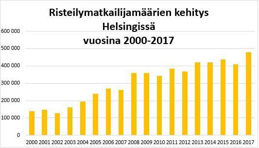 Vuoden 2017 risteilykauden aikana Helsingissä kävi yhteensä 266 risteilyalusta, jotka toivat kaupunkiin 478 000 kansainvälistä risteilymatkustajaa.