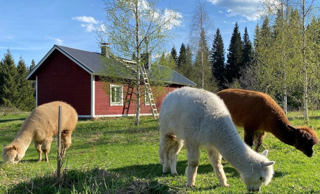 Mökin vuokralaiset hoitavat myös alpakoita, vaikkei niissä olekaan kovin paljon hoidettavaa.