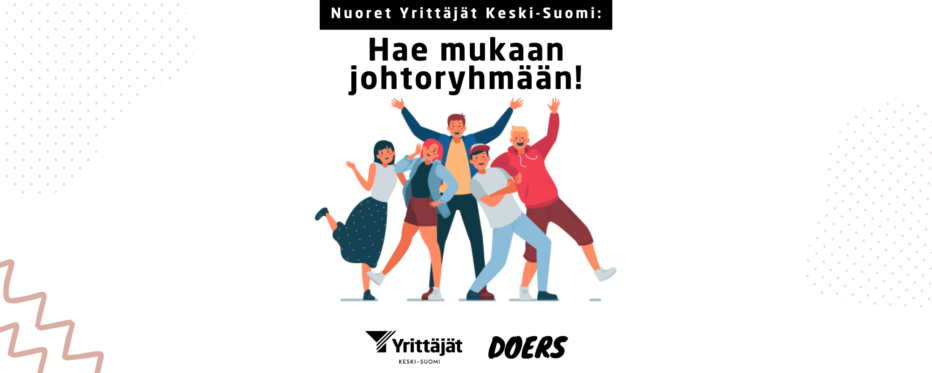 Oletko tyyppi, jota kiinnostaa tutustua uusiin ihmisiin ja parantaa nuorten yrittämisen olosuhteita Keski-Suomessa? Etsimme nyt uutta johtoryhmää DOERS-verkostolle! Keski-Suomen Nuorten Yrittäjien DOERS-verkosto kokoaa yhteen kasvuhaluisen, innokkaan ja yrittäjyyttä edistävän porukan. Verkosto kehittää Nuorten Yrittäjien toimintaa Keski-Suomessa ja vaikuttaa siihen, minkä näköistä ja tyylistä verkoston toiminnasta tulee sekä vie yrittäjyyden ympäristöä eteenpäin.