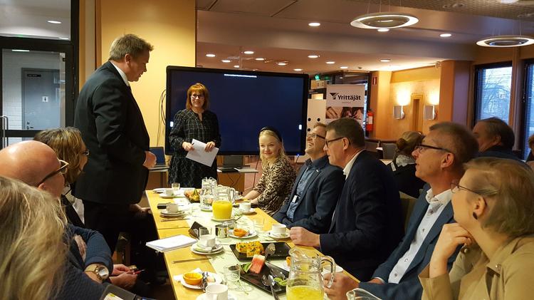 Puhemies Matti Vanhanen, puolustusministeri Antti Kaikkonen, kansanedustajat Pihla Keto-Huovinen ja Pia Lohikoski sekä Vanhasen erityisavustaja Jari Flinck, Kaikkosen avustaja Terhi Haapakoski ja kansanedustaja Ruut Sjöblomin avustaja Risto Rajala – Uudenmaan Yrittäjät ja Keuda keskusteluttivat arvovaltaista joukkoa ammatillisesta koulutuksesta keskiviikkona 29.1. Keudan tiloissa Keravalla.