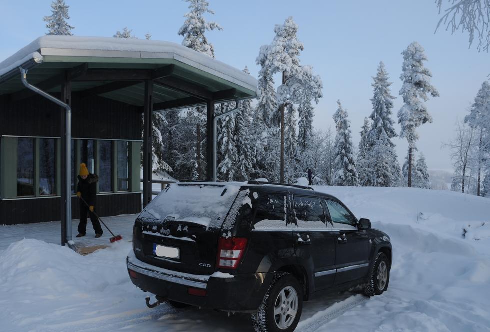 YRITTÄJÄ MARI Koposen ensimmäinen investointi kahvilan varalle oli käytetty neliveto Jeep. Se on tottavie tarpeen, sillä Kirkkoharjulle johtava raitti on hyvin jyrkkä ja mutkainen. Jeeppiä tarvitaan myös jätelogistiikassa, sillä roska-autot eivät harjulle asti kulje.