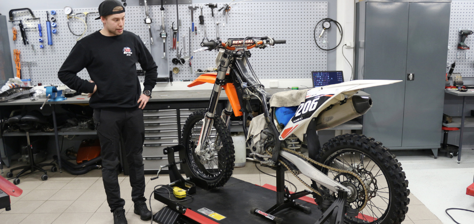 – Moottoripyöriin tehdään isompia remontteja talvella, jotta se ei ole ajokaudesta pois. Lisäksi moottorikelkkojen huolloista saadaan hyvin täytettä talven hiljaiselle ajalle. Tänä vuonna kelkkasesonki alkoi 4–5 viikkoa viime talvea aiemmin, Kostamo kuvailee.