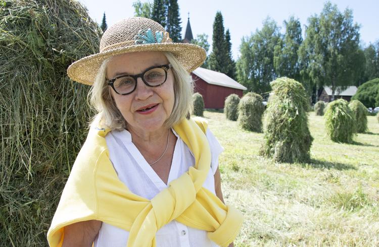 Tuore Hauhon niskavuorineuvos kirjailija Anne Syrjä löytää aiheet kirjoillensa ympäröivästä elämästä. Idea voi löytyä vaikka hauholaiselta heinäpellolta. Kuva: Jouni Lehtonen