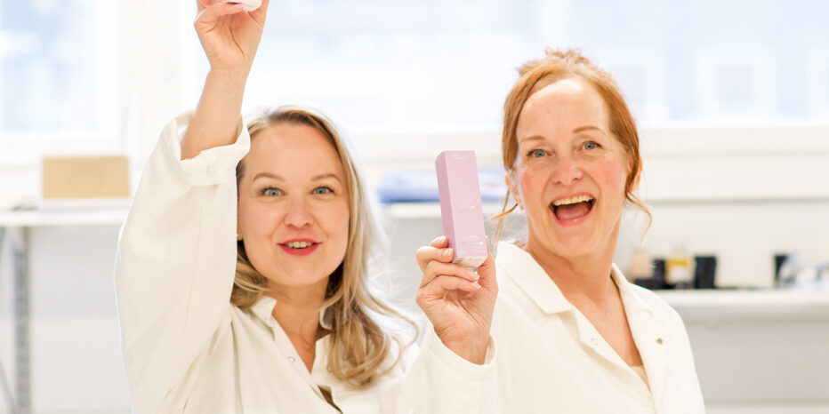 – Uutta tuotetta mietittäessä lähdetään liikkeelle siitä, mille on tarvetta ja kysyntää. Haistelemme trendejä, mutta ratkaisevaa on juuri asiakaspalautteet. Sen jälkeen mietitään raaka-aineita ja valitaan tuotteeseen sopivat kasviöljyt, aktiiviaineet ja eteeriset öljyt. Tätä kautta syntyy ensiresepti ja koe-erät, Jänkälä kuvailee.