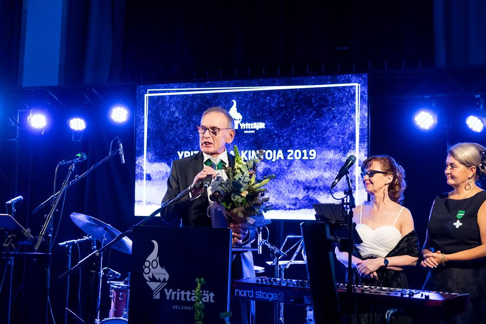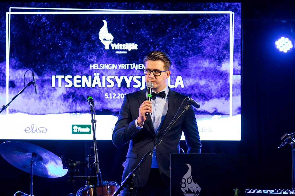 Juhlan juontajana toimi yrittäjä ja Helsingin nuorten yrittäjien verkoston puheenjohtaja Harri Kolehmainen.