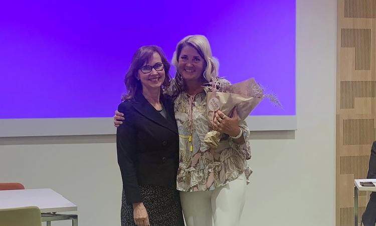 Kuvassa Helsingin Yrittäjien puheenjohtaja Mari Laaksonen (oikealla) ja toimitusjohtaja Tiina Oksala. Kuva: Outi Haapamäki