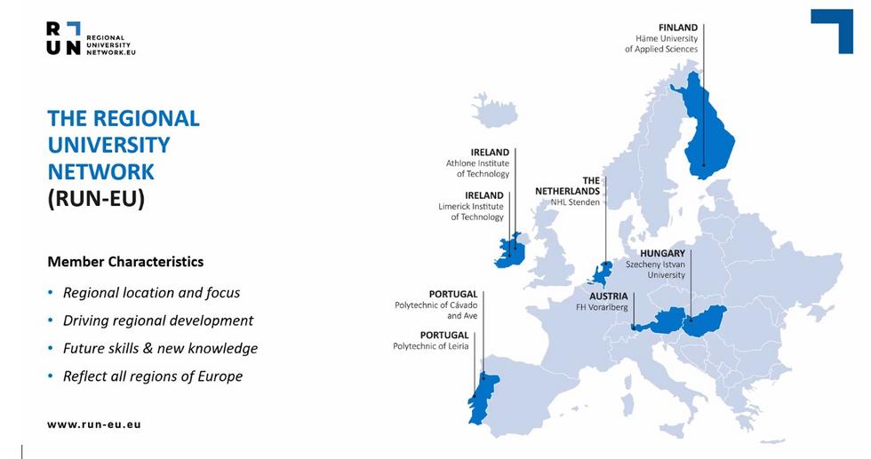 RUN EU verkostossa on mukana kahdeksan korkeakoulua kuudesta eri maasta (Lähde verkoston esittelymateriaali verkoston seminaarissa 29.6.).